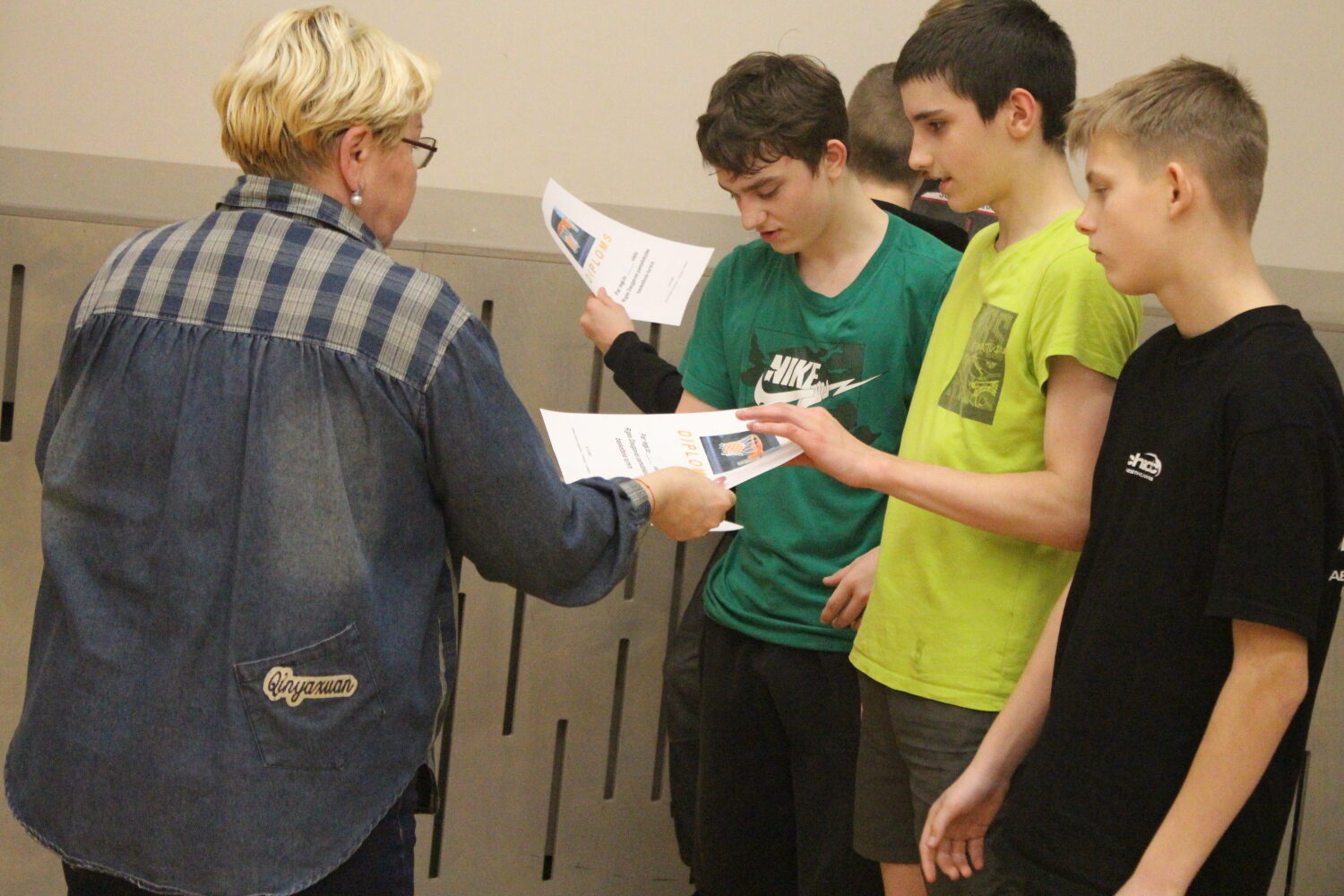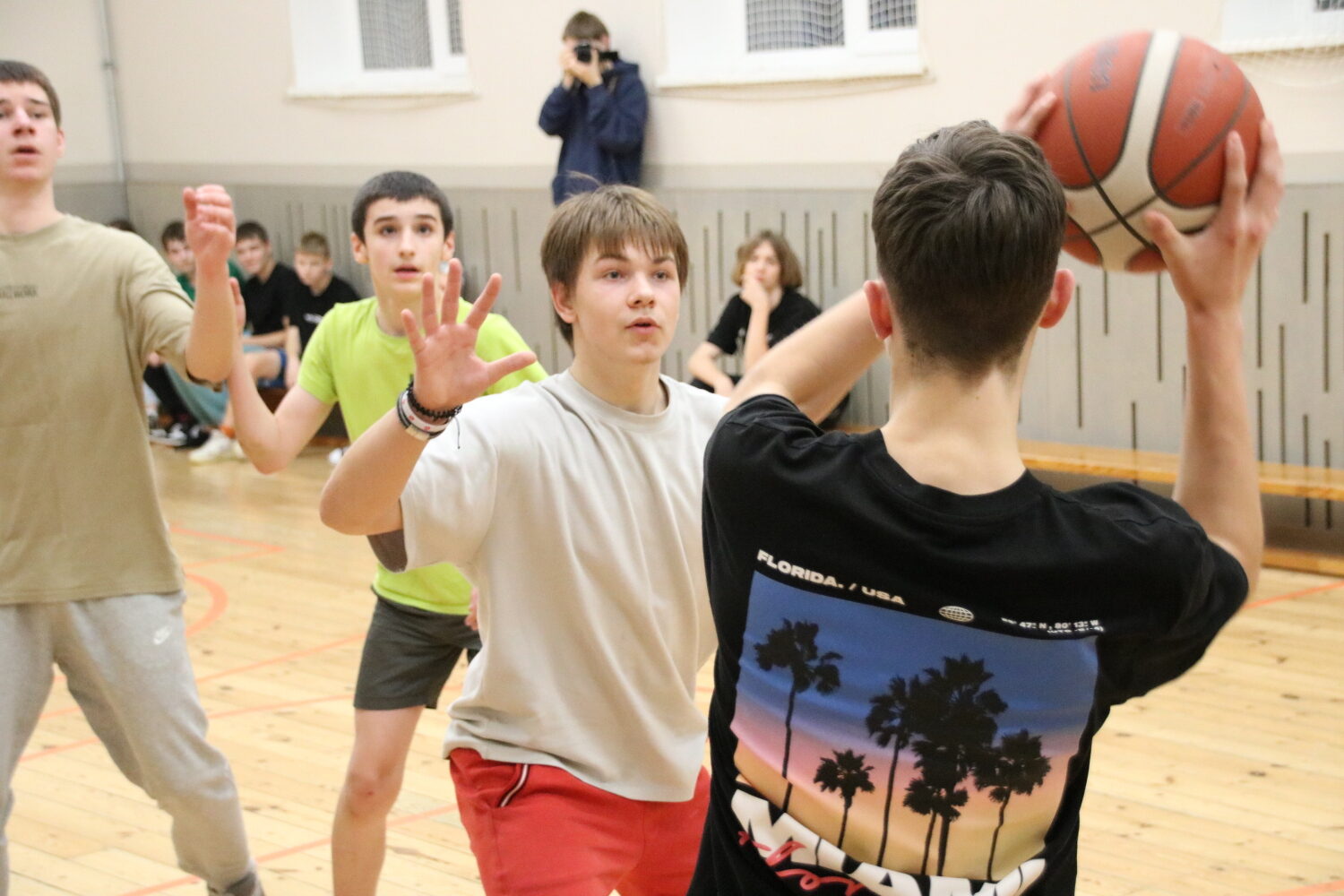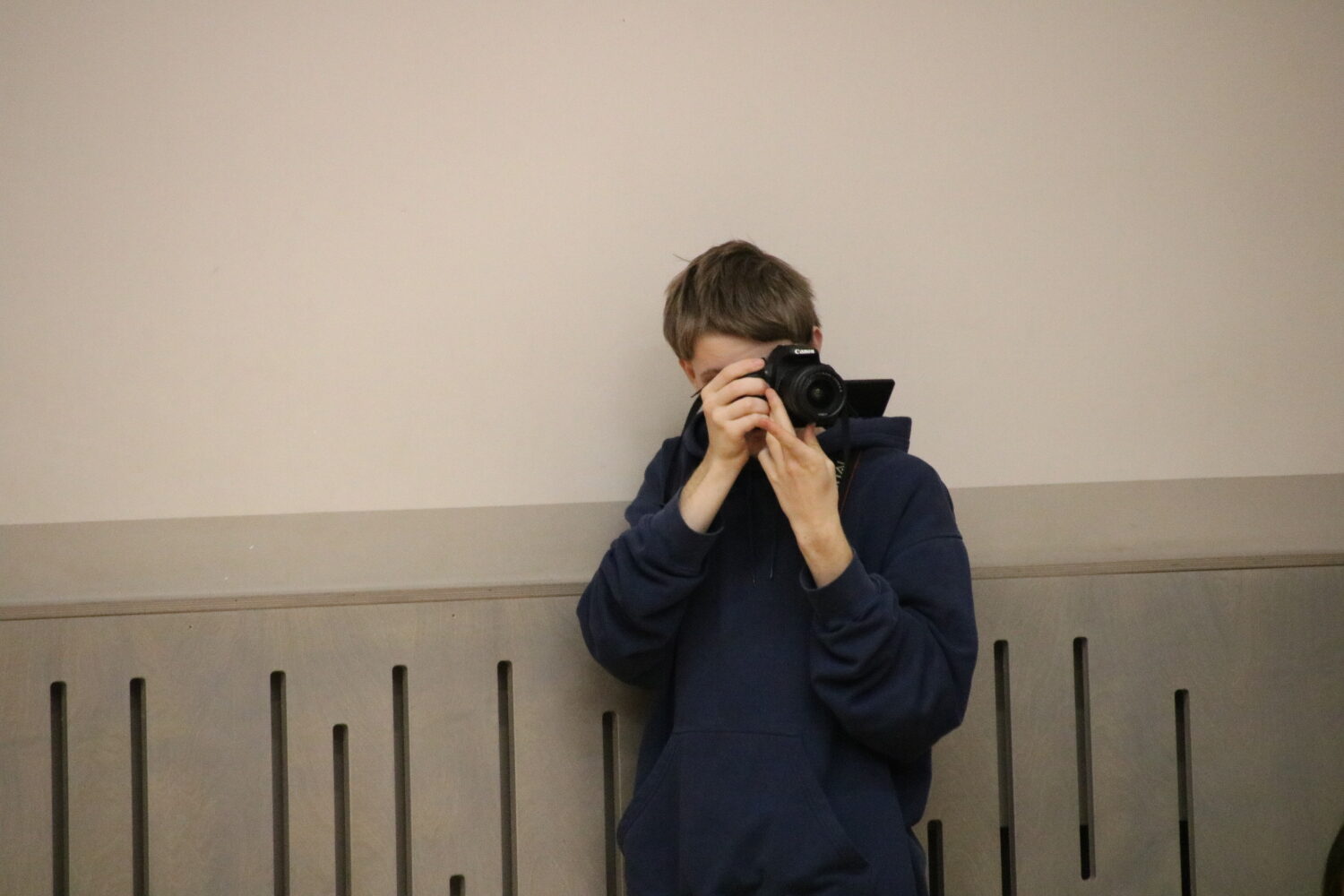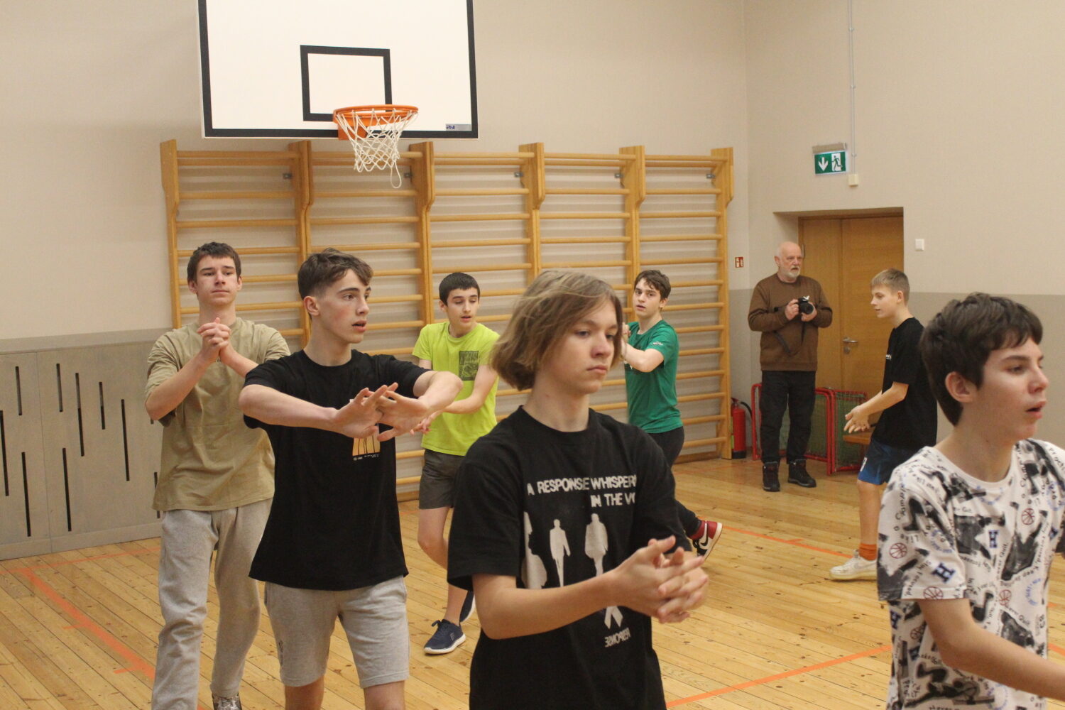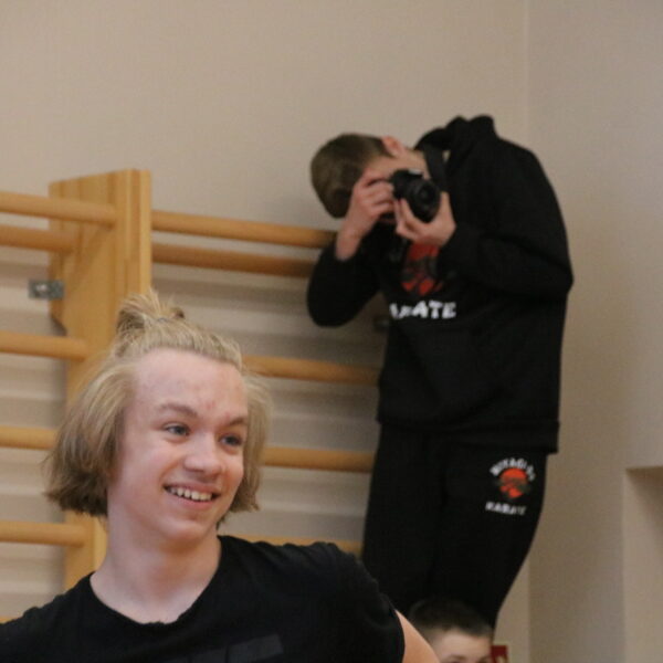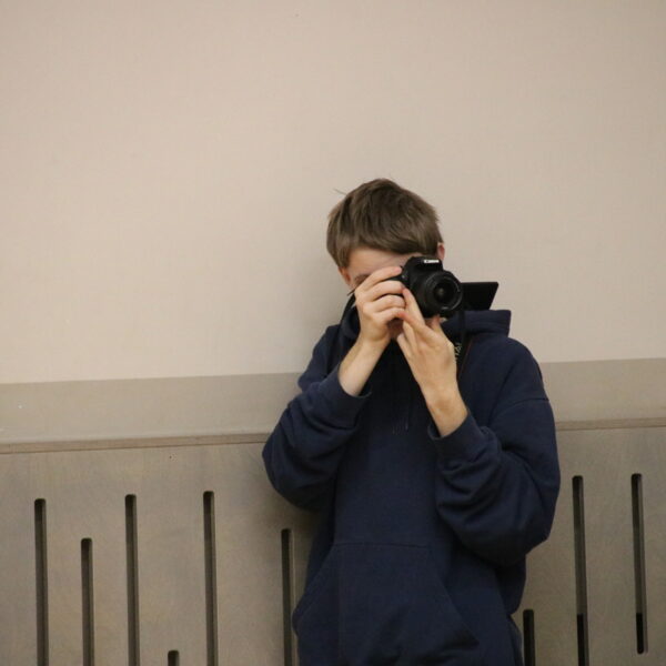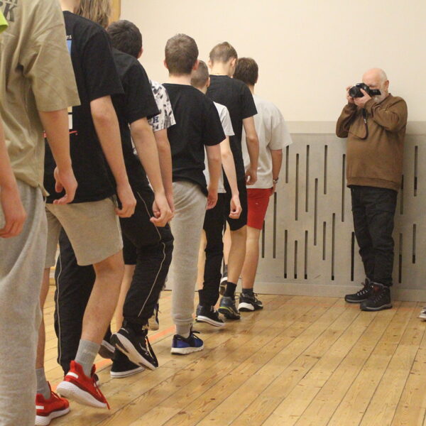 Foto: Linde Maksis, Kofanovs Aleksandrs (8.b kl., skolas fotopulcins) un Jevgenijs Orlovs (skolotajs).